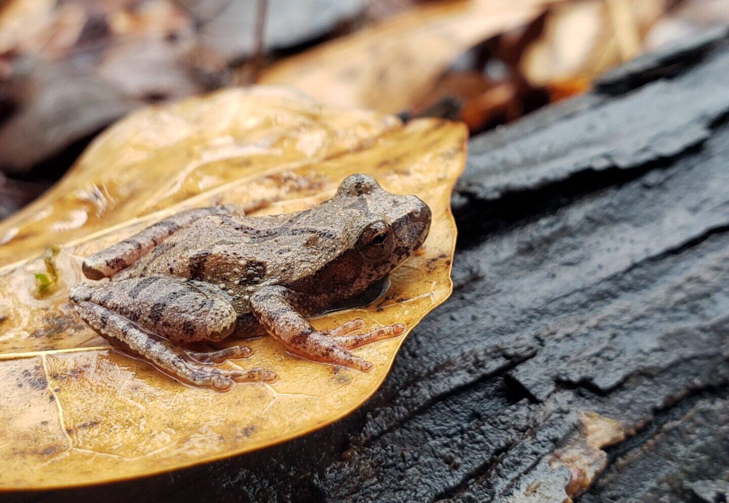 Habits: Active year-round, though most often encountered during the late winter and early spring breeding season. Arboreal but tends to remain lower in trees and shrubs compared to other treefrogs. In cold weather, individuals retreat under bark or into burrows and can survive partial body freezing.