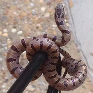 Description: A medium-sized kingsnake, typically 76–102 cm (30–40 in). Body coloration is light to reddish brown with a series of reddish-brown elliptical blotches down the dorsum, though this pattern often fades in older individuals, which may appear nearly uniform in color. Venter is whitish to yellowish with red, gray, or brown mottling. Scales are smooth. Females have shorter tails that taper more quickly than those of males.