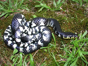 Description: A large, heavy-bodied, highly aquatic snake reaching up to 207 cm (81 in). Dorsum glossy black with a red or pink-and-black checkerboard belly; red often extends up the sides. Head may show some yellow coloration, and eyes are small and dark. Scales are smooth and shiny, with a divided anal plate (though some individuals at the Savannah River Site show double anal plates). The tail ends in a sharp, spine-like tip, giving rise to the nickname “horn snake.” Males are smaller than females but have relatively longer and thicker tails. Juveniles resemble adults but often show more extensive red along the sides, sometimes appearing banded. Anerythristic (red-free) individuals are not uncommon in the Southeast.
